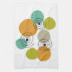 This colorful mid century modern kitchen towel features spirals and circle shapes in the colors of turquoise blue, orange, avocado green, tan, and black. Add a pop of color to your kitchen decor!