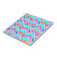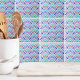 This vibrant print is perfect for everyday use to add color, or when you are looking for something a little different. Change the background coloring to customize the final look! Whether you want to use this tile as a little coaster or trivet for a drink or plate... or you want to go big with a kitchen backsplash or bathroom tile, is up to you! Do a full wall, border, or just an accent tile. Let your interior design dreams fly! Bright Colorful Geometric Triangles Pink Blue ceramic tile