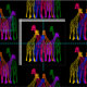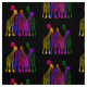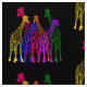Colorful design featuring outlines of giraffes of varying colors (yellow, green, purple, orange, blue, and pink)