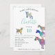 A collection of colorful, cute goats in vibrant pink, purple, blue, orange, yellow and aqua. A cute farm animals 10th birthday party invitation with baby goats and goats standing on goats. This fun party invitation is easy to personalized to create a unique party invitation suitable for children and adult goat lovers. Colorful psychedelic goat original illustrations by artist Catherine Sweetman