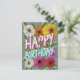 Colorful Gray Floral Personalized Happy Birthday Postcard