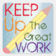 Reward your students efforts with a fun colorful sticker that says "keep up the great work." This multicolored sticker features a ombre blue chalk-like background with red, orange, green, and purple words in front of a yellow pencil. Design by Ms_Jade.