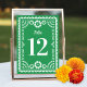 This beautiful papel picado inspired wedding table number card features an ornate frame in white, a colorful green background, and festive typography. This elegant yet modern design is a fabulous choice for a Latinx wedding, rehearsal dinner, engagement party, or bridal shower. See coordinating items in the collection...