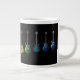 Cool mug for coffee, tea, milk, or juice with photograph of colorful guitars on a black background.