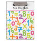 This is custom name personalized clipboard for teachers featuring colorful fun hand drawn numbers and maths symbols. It's great gift for math teachers