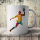 A vibrant illustration of a handball player in motion, painted with energetic splashes of color. The dynamic pose and expressive composition capture the excitement and intensity of the game, making it a perfect design for athletes, handball fans, and modern art lovers.