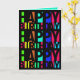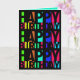 This birthday card features colorful Happy Birthday geometric block text in several bright, bold colors on a black background. The inside text reads: and many more! Click "Personalize this Template" to easily change the inside text.
