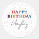 Colorful Happy Birthday Custom Name Confetti Classic Round Sticker