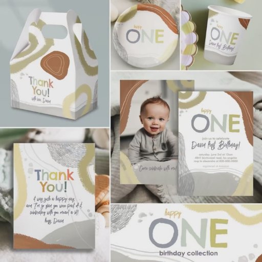 Elevate your party table with these stylish and modern first birthday paper plates. Designed with a clean, minimalist aesthetic, these plates feature elegant typography and a sophisticated layout that perfectly complements a trendy boy's 1st birthday theme. Made from high-quality, durable material, they are as functional as they are beautiful. Coordinate them with our matching invitations for a cohesive, designer look at your celebration.