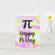A colorful Pi day greeting card with the symbol for pi and Happy Pi Day on the front. The inside says Happy Pi day! I hope you have a great day full of delicious pie, along with a pi symbol. A funny pi day (March 14) gift for a Math lover!