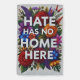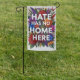 Make a bold statement of love, unity, and inclusivity with this stunning "Hate Has No Home Here" flag. Featuring vibrant, lush florals in various rich colors, this design radiates warmth and positivity while delivering an important message. Perfect for your front yard, garden, or entryway, this flag is a beautiful way to show your commitment to kindness and acceptance. Made from durable, weather-resistant fabric, it is designed to withstand the elements while maintaining its bright, eye-catching appeal. Let your home or business be a beacon of love with this floral-inspired declaration of peace.