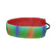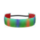 Colorful headband featuring a vibrant rainbow gradient with a textured pattern. The interior is red, with a black elastic strap connecting the ends.