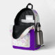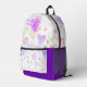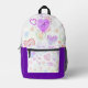 This fun backpack design features a colorful heart pattern over a white background with purple on the lower sides and bottom. Personalize or remove the initial letter monogram that is centered in the heart on the front top. A fun design for a gift to be used for back to school, diaper bag, picnics, the beach, travel and more.