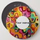The button was just as expected. My mother's smile was captured so beautifully. The size was just right and the colors we chose were bright. The print was nice and clear. A person ordering should just make sure the wording is lined up in the center before submitting