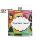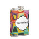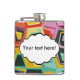 Well made flask, a little better than I had expected. Flask came in clear plastic box which gave it a nice presentation when I took it out of the zazzle packaging. Image is not printed on flask but on sticker. Don't know how this will hold up I haven't used it yet. This would make a Great gift! I plan to purchase more for friends! Cheers. I thought a little brighter than computer. Very crisp, writing wasn't