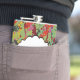 Well made flask, a little better than I had expected. Flask came in clear plastic box which gave it a nice presentation when I took it out of the zazzle packaging. Image is not printed on flask but on sticker. Don't know how this will hold up I haven't used it yet. This would make a Great gift! I plan to purchase more for friends! Cheers. I thought a little brighter than computer. Very crisp, writing wasn't