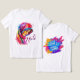 This stylish girls’ t-shirt features a colorful woman illustration on the front with “HOLI” and “HAPPY HOLI” on the back – perfect for festival vibes and playful expressions.