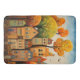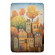 A scene of cute houses nestled amidst a tapestry of foliage, ablaze in hues of orange, blue and bronze. The terraced cityscape cascades with a sense of quaint charm, each building adorned with its own unique character.