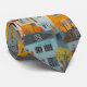 Get ready to make a bold statement with our 'Colorful Housing Pattern Fashion Tie: A Cityscape Design for the Modern Gentleman'! Inspired by a vibrant cartoon-illustration of houses in a kaleidoscope of colors - red, orange, yellow, green, blue, and purple - this tie is sure to turn heads. The abstract yet recognizable cityscape design features houses lining the width and length of the fabric, set against a striking black background that makes its colorful design truly pop.