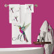 Colorful Hummingbird watercolor Monogram initial Bath Towel Set