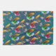 AI generated artwork of colorful, pastel-hued hummingbirds in flight on an ocean blue background. Reverse shows identical design.