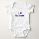 I love this onesie, it's adorable! The material is amazing so soft and the color is a perfect sky blue. When my daughter-in asked me to help with her Baby Shower, I was thrilled. It was co-ed & the theme was Cookie Monster. I had no idea that the whole world was after that big blue Monster. Thank goodness for Zazzle, I got most of the party supplies here. Then I found this onesie! They made my customization so easy. The colors are awesome. I wrote the word "Loved" across the bottom of the Cookie Monster in red letters when I was putting it together. I saw the preview & liked it. But to see it in person, OH, it was fantastic, they do exceptional work! I am so glad that I found this onesie/bodysuit. The production time and shipping were exactly what I was told, which made it easy to plan the party. Packaging was nice as well. If you are looking at this product, look no further, I highly recommend it! I'm certain that I'll be back to "design" whatever my new Grandson "needs.". The printing on the onesie/bodysuit is crisp, and clean. With perfect colors that blend well with the blue background of the basic material. We are so happy with how it came out.