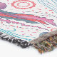 A quality printed throw has its advantages. This is a much finer weave throw than its loopier cousins, and though lighter, it is worth the investment for custom room accessorizing. The back is much prettier than the typical brown, and the fringe on the long sides very vivid, the selvage nicely done. Before photographing, I washed the throw in cold water, delicate, with a thicker woven throw the same size. On tumble dry low, this throw was dry in half the time as the other. This is a very practical quality if you use throws for furniture covers or to wrap up in frequently. The sleekness of the fabric makes it a great layer for accenting or protecting without the feeling of sitting on too much stuff. Perfect for napping or when you feel a light chill coming on. The color printing is beautiful and on this fabric, matched the design and color of my Photoshop image. This is an advantage for blending room fabrics and colors. The fringe on the short sides prints the colors from the design image and therefore varies from the side fringe. I streaked a white fractal line through the plaid pattern to give the illusion of weaving. This printed as crisp as an illusory thread, and put some white in the short side fringe, showing another advantage of print vs loomed- for artistic purposes, line lines, detail, and color integrity can be planned and preserved. My loomed throws have color limitations and more of a needlepoint texture. Print throws reproduce an exact image. The throw felt a little stiff straight out of the package, but this went away in the first delicate wash. Of course I searched the wash water for ink or bleeding and there was none.