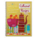 Bright colors, an abstract coffee pot and bowl of fruit hold your favorite recipes, with space on the cover to customize.