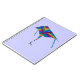 Photograph of a colorful kite flying against sky-blue background. Background color customizable.