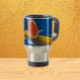 Take along your coffee and other beverages in this sturdy and attractive, white plastic commuter mug that features the photo image of colorful, orange and white koi fish,a type of ornamental garden carp, also referred to in Japanese as Nishikigoi, and set against a bright, blue pool background. Image wraps around mug.