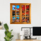Colorful Lake Scene Square Faux Window Illusion Poster