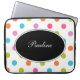 Colorful polka dot laptop monogram sleeves with ccustom design that protects your portable electronics such as your netbook, laptop, or tablet in style. Wild and fun, this is a great design for ladies or teenagers.