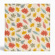 This design displays a charming and vibrant fall-themed pattern featuring a variety of colorful leaves. The background is a soft beige, allowing the leaves to stand out in hues of red, yellow, orange, green, and pale blue. The leaves are arranged in a playful and scattered manner, with each leaf type showing distinct shapes and veins, representing various species of trees. The overall design is lively and whimsical, capturing the essence of the autumn season with a touch of warmth and cheerfulness.