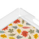 This design displays a charming and vibrant fall-themed pattern featuring a variety of colorful leaves. The background is a soft beige, allowing the leaves to stand out in hues of red, yellow, orange, green, and pale blue. The leaves are arranged in a playful and scattered manner, with each leaf type showing distinct shapes and veins, representing various species of trees. The overall design is lively and whimsical, capturing the essence of the autumn season with a touch of warmth and cheerfulness.
