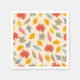 This design displays a charming and vibrant fall-themed pattern featuring a variety of colorful leaves. The background is a soft beige, allowing the leaves to stand out in hues of red, yellow, orange, green, and pale blue. The leaves are arranged in a playful and scattered manner, with each leaf type showing distinct shapes and veins, representing various species of trees. The overall design is lively and whimsical, capturing the essence of the autumn season with a touch of warmth and cheerfulness.
