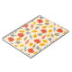 This design displays a charming and vibrant fall-themed pattern featuring a variety of colorful leaves. The background is a soft beige, allowing the leaves to stand out in hues of red, yellow, orange, green, and pale blue. The leaves are arranged in a playful and scattered manner, with each leaf type showing distinct shapes and veins, representing various species of trees. The overall design is lively and whimsical, capturing the essence of the autumn season with a touch of warmth and cheerfulness.