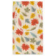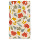 This design displays a charming and vibrant fall-themed pattern featuring a variety of colorful leaves. The background is a soft beige, allowing the leaves to stand out in hues of red, yellow, orange, green, and pale blue. The leaves are arranged in a playful and scattered manner, with each leaf type showing distinct shapes and veins, representing various species of trees. The overall design is lively and whimsical, capturing the essence of the autumn season with a touch of warmth and cheerfulness.