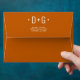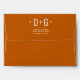 Colorful leaf print and initials burnt orange wedding envelope. The outside of the envelope is of orange color with your initials and address in white on the flap. The inside includes a colorful leaf print pattern. If you want an envelope liner you can delete the leaf print and use the one available in our "leaf print" collection.