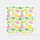 Colorful summer themed napkins featuring a white background with yellow, green, and pink colored lemons.