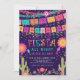Colorful let's fiesta summer invitation featuring bunting flags, flowers, confetti & cactus plants