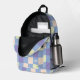 Welcome back to school with our trendy and girly backpack, perfect for those who love to combine classic patterns with a touch of whimsy. This backpack, featuring a checkerboard design on a light blue background with playful purple and peach fuzz accents, is a stylish choice for students of all ages.