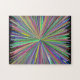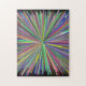 This vibrant puzzle design features a pattern of lines of different colors bursting outward from a single point.
