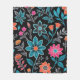 Colorful Linoprint Floral Pattern Fleece Blanket