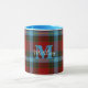 Great looking Mug done in a traditional Scottish tartan plaid, in the colorful red and sky blue MacLay / Livingstone Clan plaid. Personalize the white one letter monogram and name, for yourself or as a great gift idea.