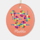 Lightweight, smooth, pure white ornament with nice sheen. Perfect size to be seen from across the room ... and to attract closer inspection! Price was great for ordering enough for the whole family! Clear, bold black design just as requested. Matches the order exactly. Just so nice!
