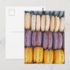 This postcard features a photo of colorful macarons.