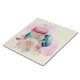 Ceramic tile with a delightful image. 3 colorful macarons, pink, green and blue with a fancy rose floral bouquet and a splash of pink watercolor. Delicious and stylish too! Light yellow background.