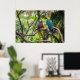 Brighten any space with this joyful close-up of two magnificent macaws sharing a branch. Electric blue, turquoise, vivid orange, and golden-yellow feathers pop against lush green foliage, with sunlight catching every detail—from tiny feather textures to expressive eyes and curved beaks. The birds’ gentle head tilt and shared perch create an instant feeling of companionship, curiosity, and tropical warmth. Perfect for kids’ rooms, living rooms, home offices, sunrooms, tropical-themed bathrooms, or as cheerful gifts for bird lovers, nature enthusiasts, teachers, zoo fans, or anyone who smiles at bold, colorful wildlife.