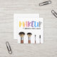 Colorful square business cards design for Makeup Artists. The design features makeup brushes and each letter of the word makeup in a different bold and bright color. Be a make up artist that stands out from the crowd with these fantastic square business cards.