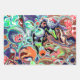 Blue, red, lime green, brown, purple, teal and turquoise birthday gift wrap.